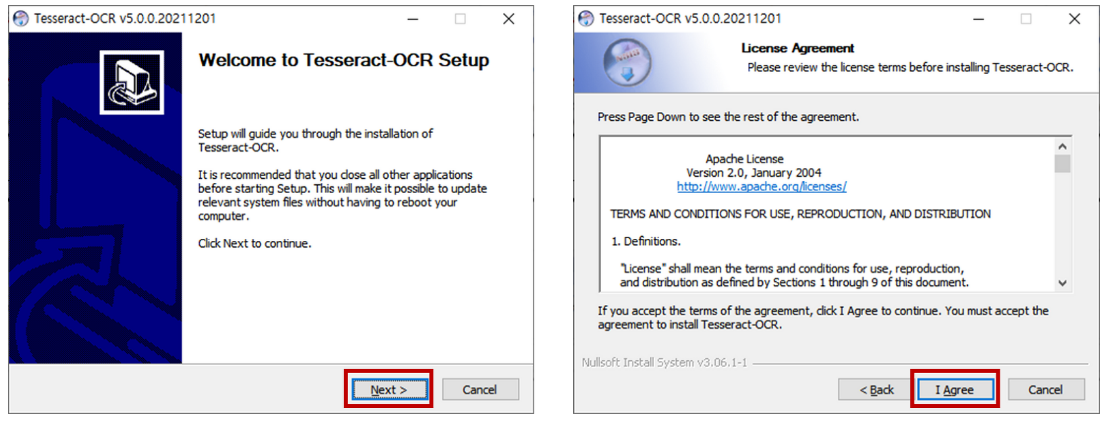 Windows 64비트용 설치 파일: tesseract-ocr-w64-setup-v5.0.1.20220118.exe